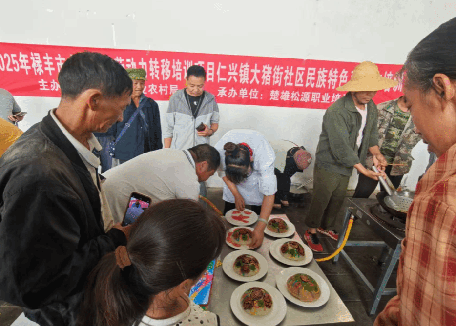 近日,仁兴镇大猪街社区举办了“民族特色菜制作”培训班,44名脱贫群众参加了培训。培训摒弃“单向灌输”模式,采用“系统化教学+专业化指导+市场化导向”立体体系,从食材挑选、调料配比到火候把控、菜品创新,全方位帮助学员实现从“无技可依”到“有技傍身”的转变。